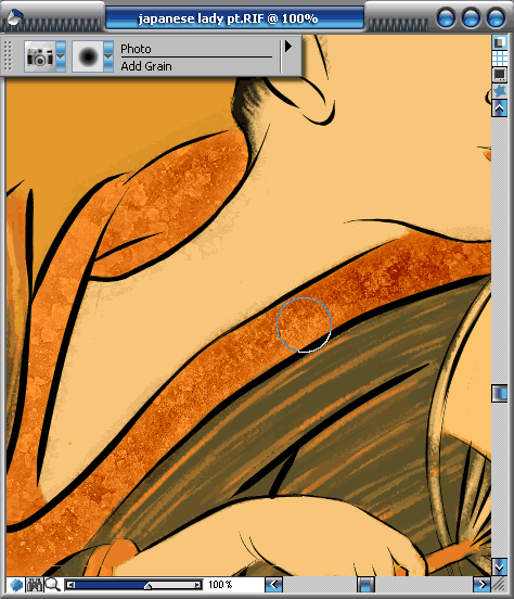 6.選用【pavement】的紙張紋理,使用【photo】/【add grain】(照相/添加紋理)給和服的領子添加紋理。
