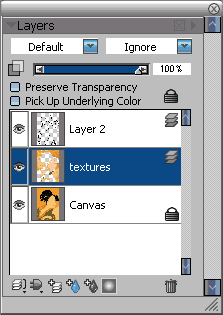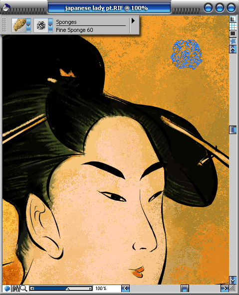 7.新建一層,命名為textures。使用【sponges】/【fine sponge 60】(海綿/優質海綿60號)的筆刷變體,在新圖層上進行紋理筆觸的添加。這時intuos2可以幫助你進行非常細膩的完成這個工作。