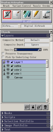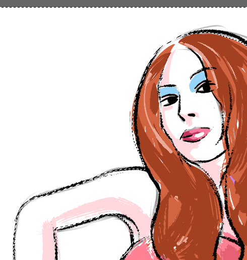 ?。阂簯B墨水筆的特性像粘糊糊的東西,最好筆觸之間不要重疊在一起,疊加筆觸更會出現意外的效果,所以需要表達層次最好分層畫。而且大部分的液態墨水筆都會有一個resist的筆刷,這個就是上面筆刷的專用橡皮擦,可以用相同的筆觸擦拭,這個和eraser(橡皮擦)有些不同。這個圖,最后我用soft cloner修正了一下不成比例的手臂,一開始有些潦草,忽視了。所以請大家一定要認真起稿……哈哈……