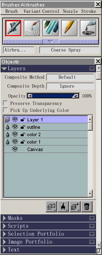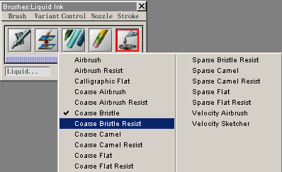 3.雙擊液態墨水圖層1,重新命名便于區別。新增一個液態墨水圖層在原來圖層下面,用coarse bristle(粗糙硬毛筆)畫出膚色部分的簡單轉折面。