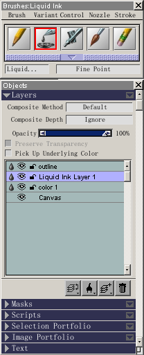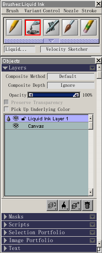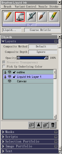 2.新建一個liquid ink layer(液態墨水筆圖層),選用velocity sketcher(速寫素描),用黑色,勾畫輪廓線。