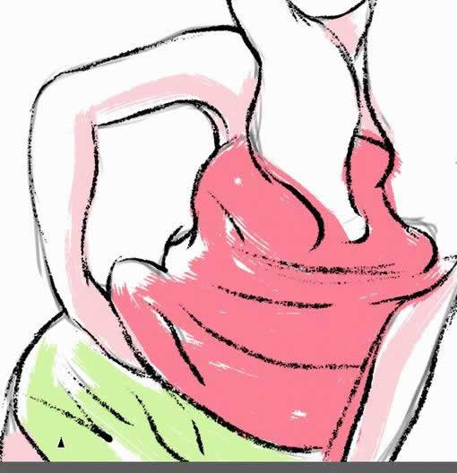 4.繼續用coarse bristle(粗糙硬毛筆)畫出衣服和褲子部分的大體色調,用筆可以隨意輕松一些。