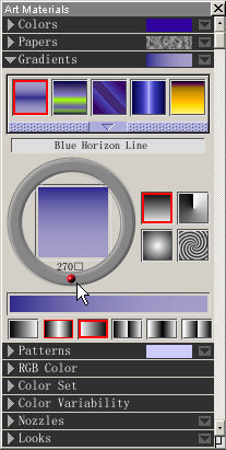 14.到gradients(漸變面板),選一個漸變,改變一些屬性。到canvas(畫布)圖層,按ctrl+1調出tools(工具面板),選用油漆桶工具在選區中進行單擊填充。