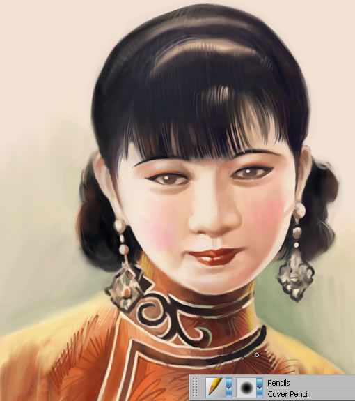 8.使用pencils/cover pencil繪制細(xì)部,把一些細(xì)節(jié)刻畫地更加充分一些。