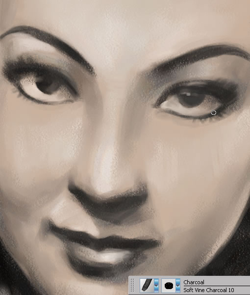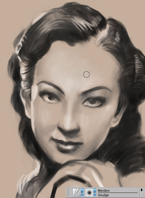 8.為了得到更加柔和的畫面效果,用blenders/smudge柔和筆觸,并保持一定的顆粒效果。