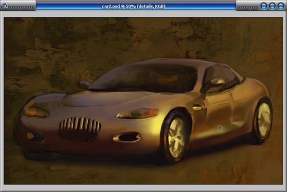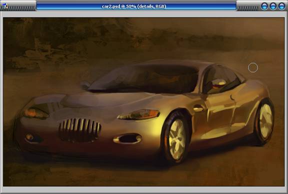 6. 再建一層作為細化使用,使用一個噴筆模式的軟筆刷,柔和局部的層次關系,重點表現金屬質感。利用 intuos 3 的輕柔運筆手勢,控制噴筆工具的作用強度。