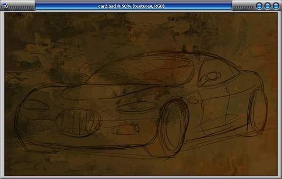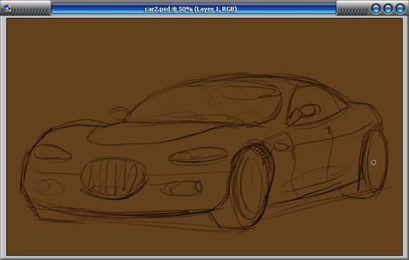 2. 用一種暖棕黃色填充背景層,新建圖層,繪制出大致的輪廓比例關系。