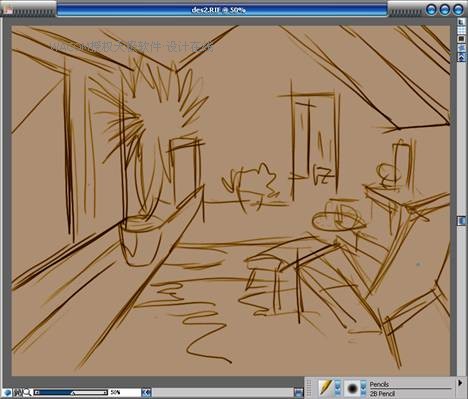 2.新建一層,使用pencils/2b pencil畫出初步的構思草圖。