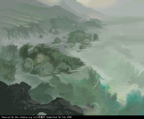 對于背景來說。我個人有自已的一點體會(雖然自已畫得并不好),也許就是很多人苦惱的,畫出來的東西不像是自然界的,特別是當你畫的是自然界存在的事物的時候(也就是非人工制品),總感覺畫的帶有一種人為的痕跡,要么規整等等。我個人覺得自然界最大的特點就是不可重復,什么都是隨機的,人的指紋都很難有兩個人一樣,那么自然界的事物舉個例來說,一片草地上的草沒有兩根是會以完全一樣的角度指向同一個方面。一片森林中,不會有兩棵樹的形象是一樣的。大到形象,小到每一片葉子,每一根樹枝的粗細,朝向。其它的事物以此類推。