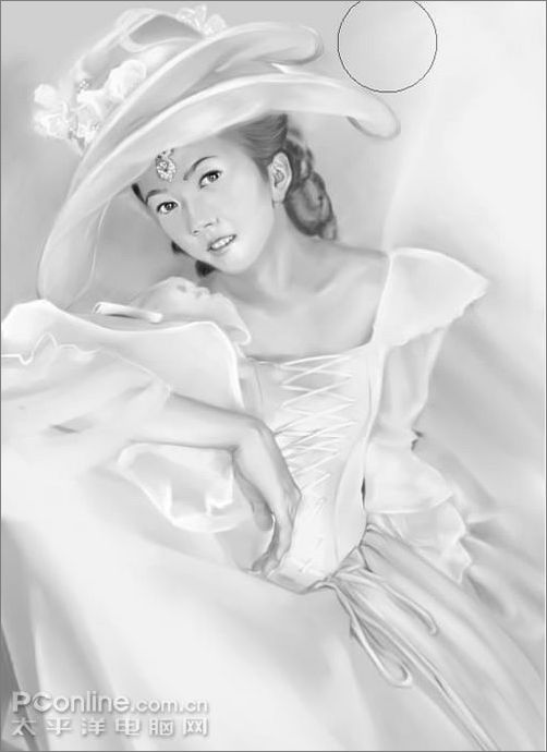 1、在pt里用數碼噴筆將不透明度條到5%,濃度35%.用黑白直接撲出大體色塊,抓住形態,再就是注意光影。