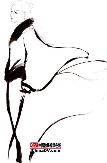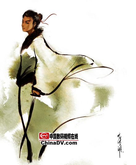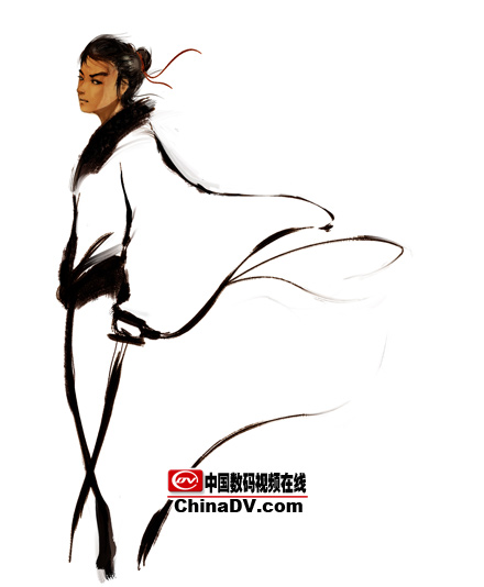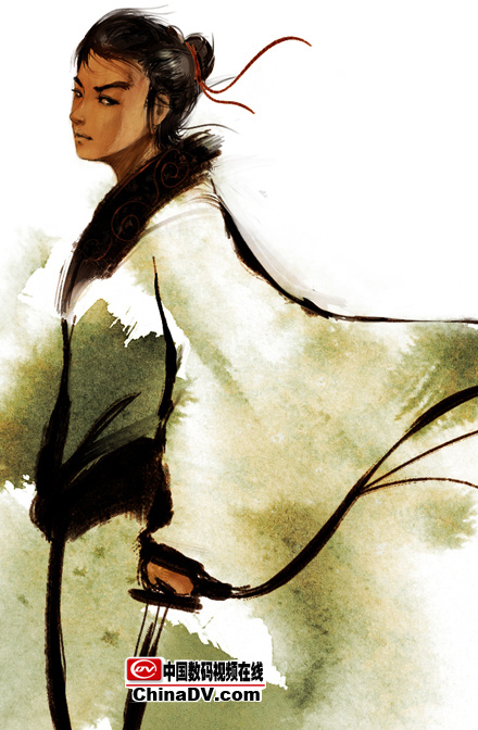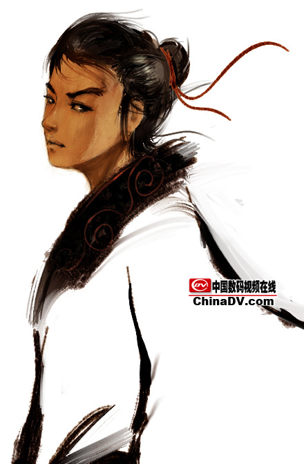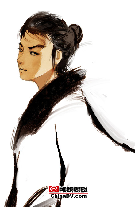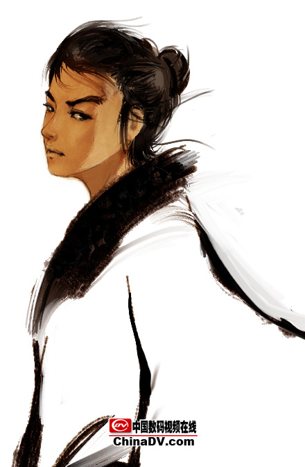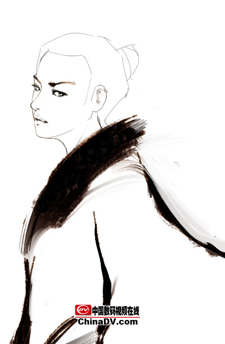 4.假定一個光源,畫出受光和背光,這樣人物的體積就出來了,體積除了靠線來表現之外更多的都是用明暗來表現。同時深入頭發,畫出飄逸的感覺。