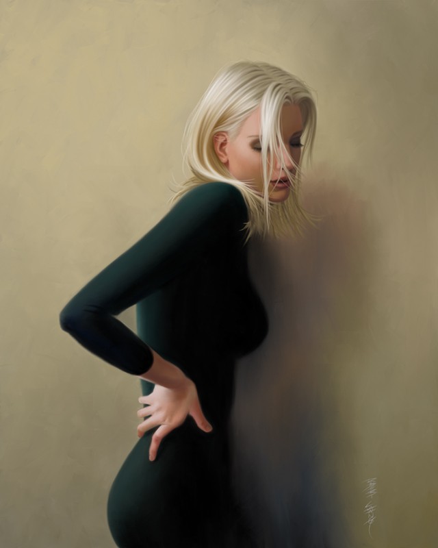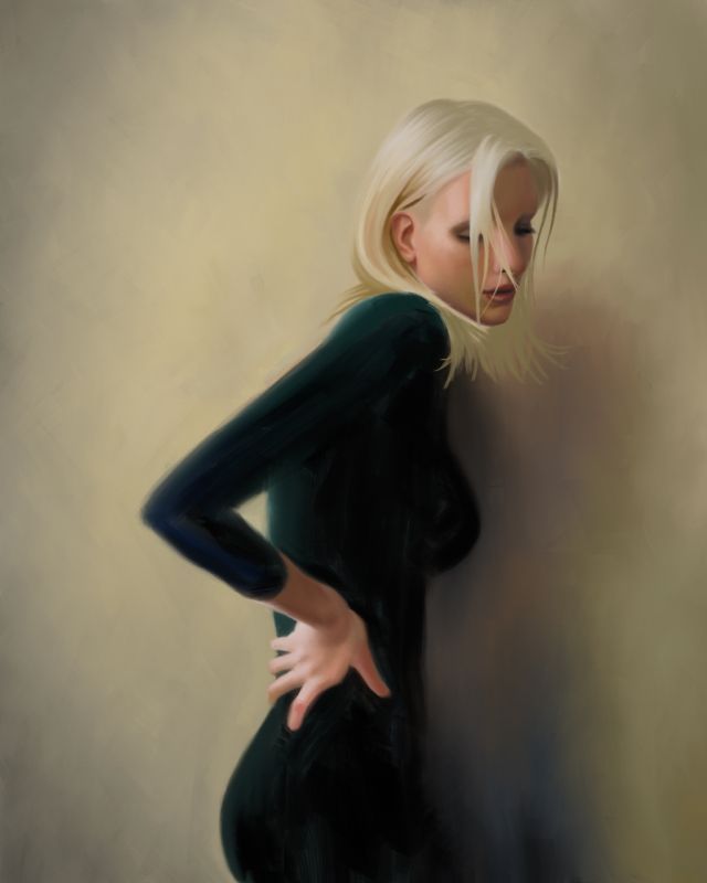 修正手部細(xì)節(jié)后,同時(shí)完成頭發(fā),簽名然后去睡覺!如你所想,我對(duì)用油畫刀畫細(xì)節(jié)已經(jīng)發(fā)狂了。這并不是我原先所想的。我只想要一個(gè)松散簡(jiǎn)單的畫,卻以改變油畫刀的大小到非常小以畫細(xì)節(jié)而結(jié)束。