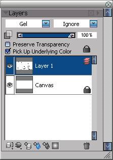 1.運行painter 8軟件,新建一個空白文件。新建一個圖層,把圖層混合模式改為gel。使用pen/smooth round pen 1.5,選用黑色畫出基本的輪廓線條。不必在意線條的流暢,允許一些歪扭,這樣反而更有情趣。