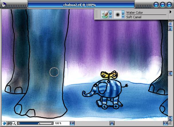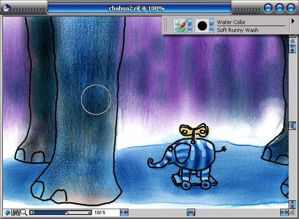 本例使用painter 8結合intuos 2數位板模擬了幾米風格的插畫,painter 8豐富的水彩畫筆讓插畫的創作有了更多的選擇,intuos 2數位板的出色繪畫手感也讓繪制過程更加流暢。如果能夠結合自己的心情再加一些抒情文字,那么這樣風格的成人兒童畫一定會讓人耳目一新的。 文章末尾提供.rif文件供大家下載參考。