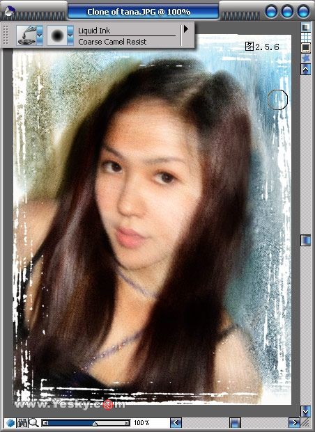 6.使用【liquid ink】/【coarse camel resist】(液態(tài)墨水筆/腐蝕粗糙駝毛筆)的變體進行筆觸的加工。【liquid ink】中,幾乎每種變體都有相應的resist,這種有點類似于腐蝕效果的變體比橡皮擦更加有特色。經(jīng)過resist加工以后的邊框是不是更加生動了呢?(圖2.5.6所示)