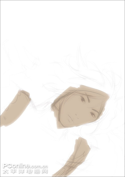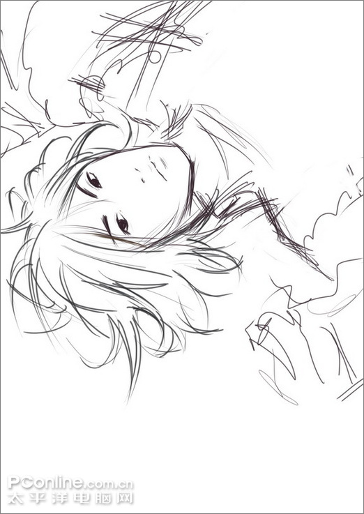 1.打開pt,使用鉛筆工具畫出草稿,這次的是倒著的構圖,所以畫的時候要倒過來畫哦,再旋轉畫布來看效果,草圖還是比較隨意,腦子中有大概的畫面就好。