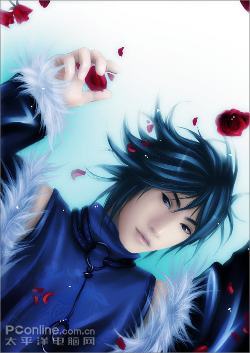 8.加上散落的花瓣和白點來增加畫面效果,用橡皮調整透明度擦出朦朧的透明感,完成