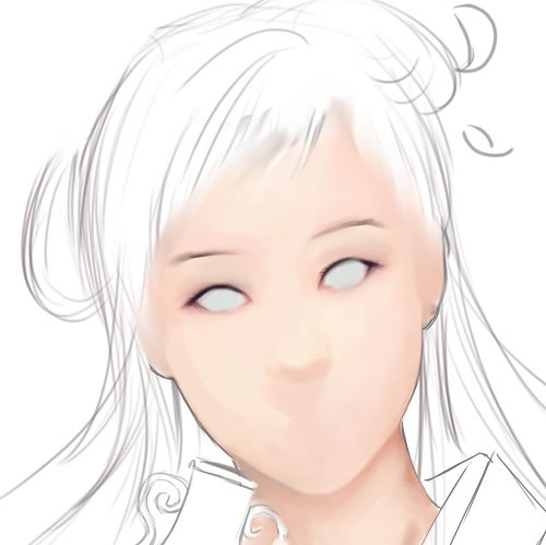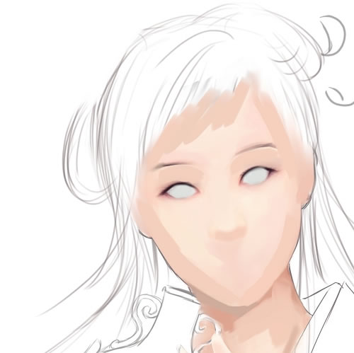 選擇“數(shù)碼噴槍”,加大畫筆直徑,在頭發(fā)區(qū)域內(nèi)鋪滿底色,畫的時候根據(jù)頭發(fā)的明暗區(qū)域適當加重或減輕噴槍的壓力,畫出大致的色彩明暗。