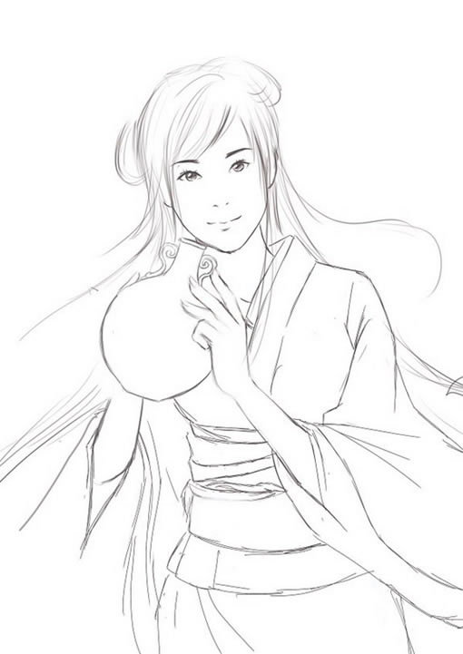 6.刻畫細節(jié)部分。去除線稿看還有沒有地方需要調(diào)整的,再把背景色打開,適當調(diào)整細節(jié)