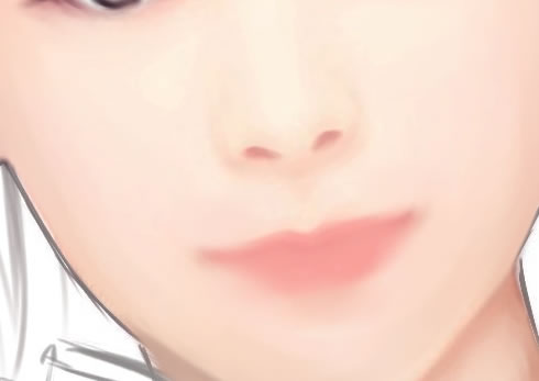 用較細的數(shù)碼噴槍選擇深紅色。畫出唇縫的陰影,注意唇角的陰影,然后修飾嘴唇邊緣,加上高光即可完成。
