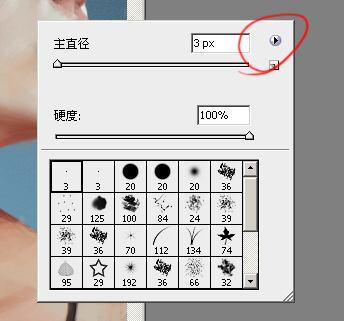 10、在畫布上點(diǎn)擊鼠標(biāo)右鍵,就會(huì)出現(xiàn)如圖所示的面板,點(diǎn)擊右上角的小箭頭,然后選擇“新建畫筆預(yù)設(shè)”。