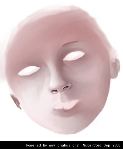 接下來新建一個圖層,忽略頭發和五官,先用調和筆中的加水筆把臉上的皮膚顏色處理均勻。注意臉部肌肉所形成的明暗變化。
