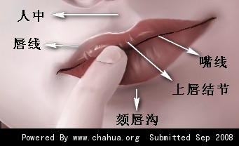 頦唇溝是一個比較專業的名詞,醫學上,特別是整容行業用的比較多。其實指的就是下巴和下嘴唇間的夾角的頂點。這個夾角就是下嘴唇下面那塊陰影的原因。從側面可以很清楚的看見這個夾角。反過來說,從正面看,畫畫的時候如果把這塊陰影處理好了,嘴唇就可以自然的從下巴上抬起來。一般來說,下巴突出或者“地包天”的人,頦唇溝不明顯或者幾乎沒有,于是就需要整容,想當年87版紅樓夢的主角,那位演賈寶玉的兄臺就被導演“逼迫”著去隆了下巴,以加深頦唇溝。那時候中國人還保守的很,連可樂好象也沒流行,整容更加是一個不被人們接受的稀罕事情了,可是那位兄臺還是整了,沒辦法,頦唇溝不明顯人家導演不讓他演戲,但是他為藝術獻身的精神絕對值得我們學習。所以嘛,還是畫畫好,那些會唱歌會演戲的就算不用整容,也可能被潛規則了。。。。