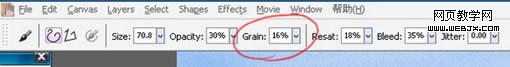 2.把油性蠟筆的 grain 值調整至20以下可以得到比較強的顆粒質感,比較合適繪制馬匹。grain 的值越低,筆刷的顆粒密度就越小,相應的顆粒質感就越明顯。