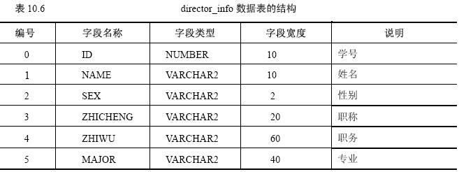 【參見光盤文件】:第10章/createtabledirectorinfo.sql。