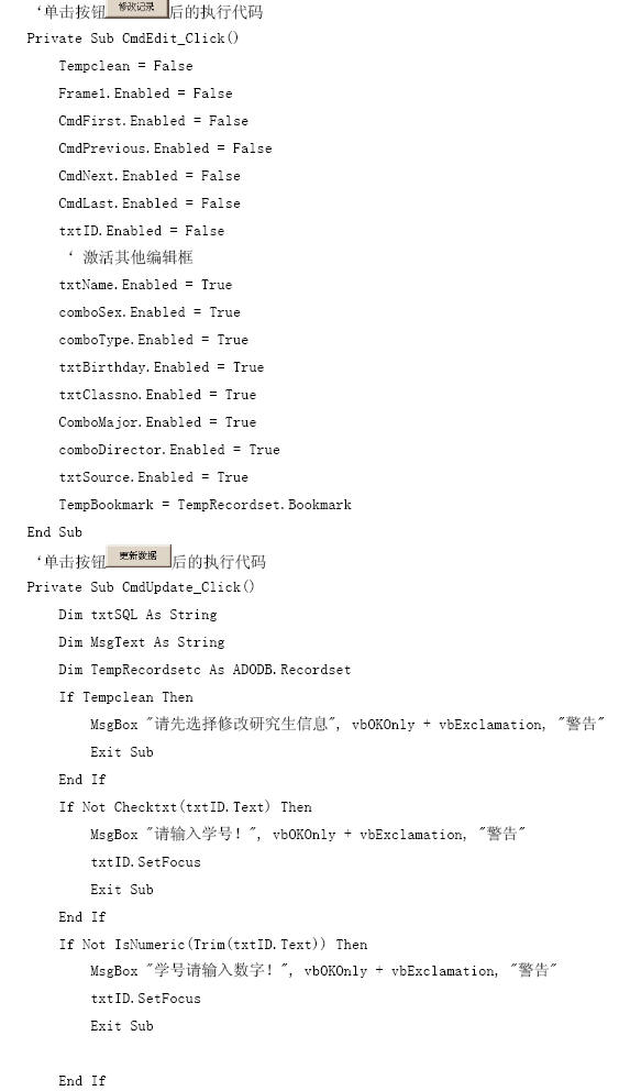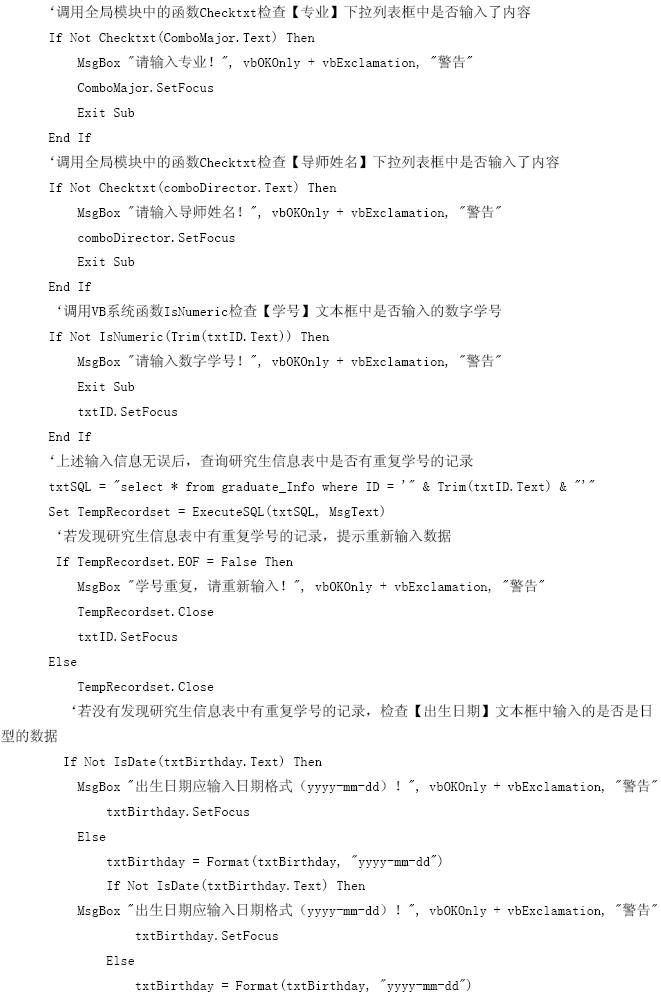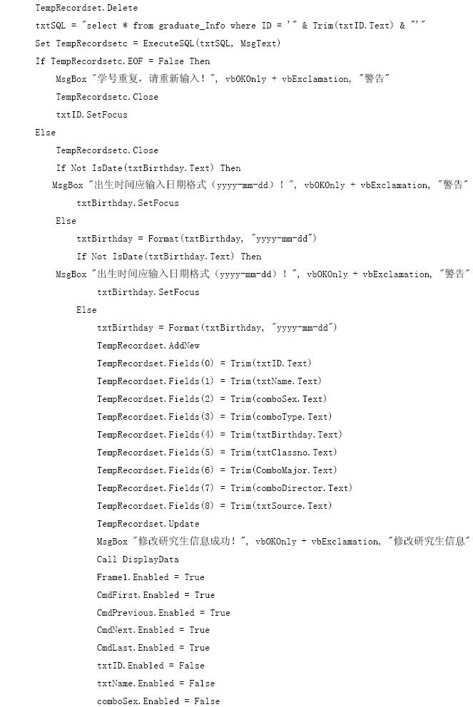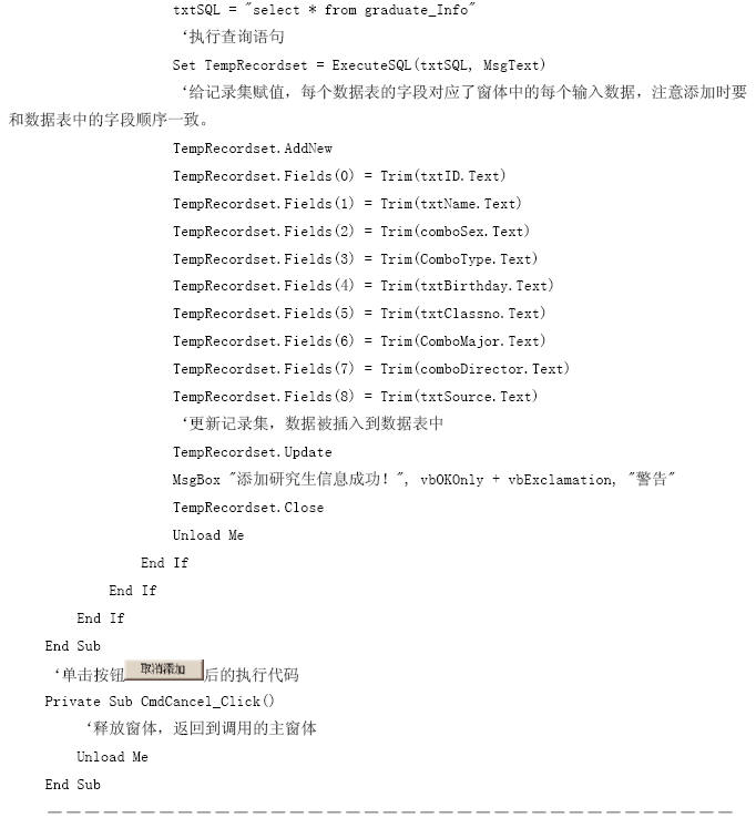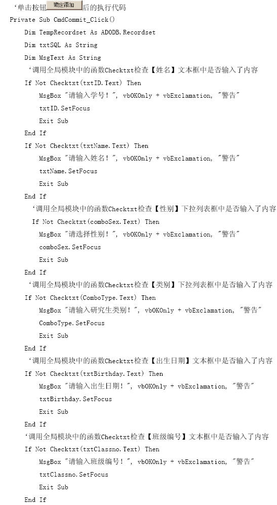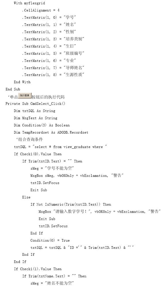 【參見光盤文件】:第10章/研究生管理信息系統(tǒng).vbp。