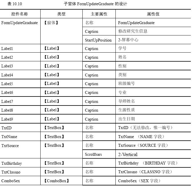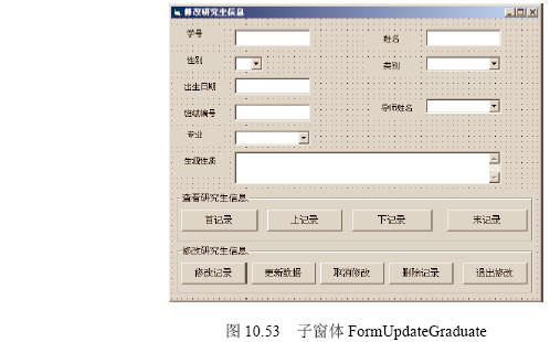 打開名為formupdategraduate的子窗體,如圖10.53所示。