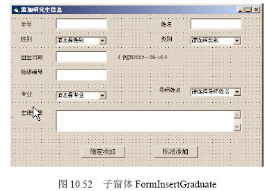 打開名為forminsertgraduate的子窗體,如圖10.52所示。