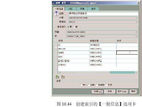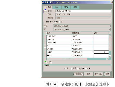 (1)在如圖10.43所示的創(chuàng)建索引的【一般信息】選項卡中按照圖示進行操作。