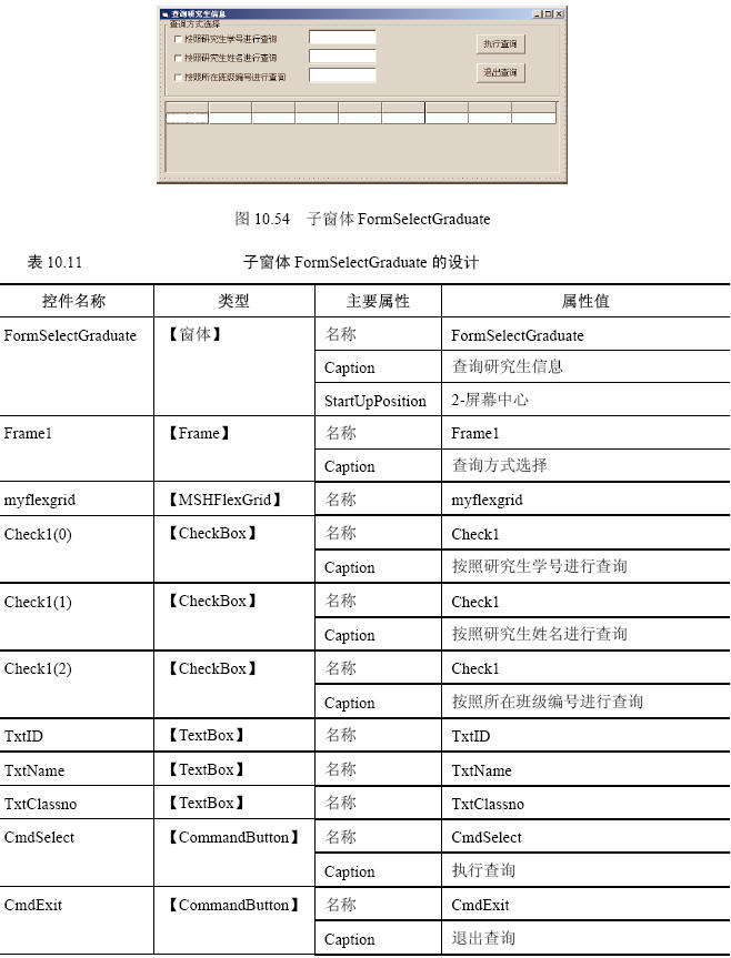 打開名為formselectgraduate的子窗體,如圖10.54所示。窗體的設計如表10.11所示。