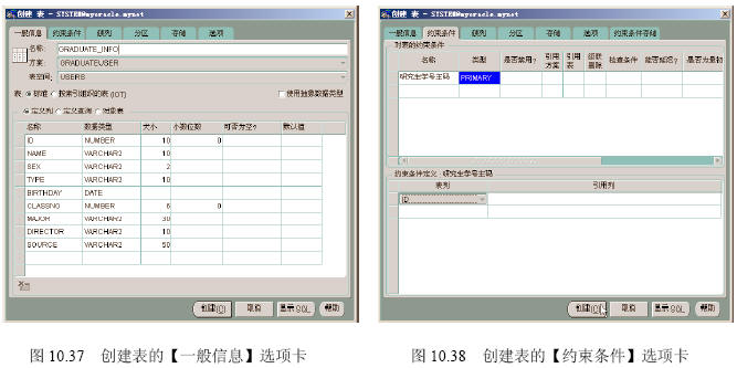 (1)在如圖10.37所示的創(chuàng)建表的【一般信息】選項卡中進行如下操作。
