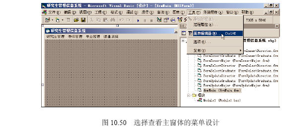 (6)出現(xiàn)如圖10.51所示的【菜單編輯器】界面,可以查看主窗體的菜單設計。