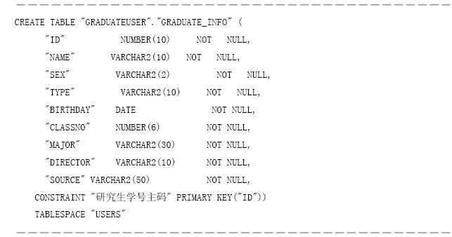 (3)上述創(chuàng)建數(shù)據(jù)表graduateuser.graduate_info的sql代碼如下。