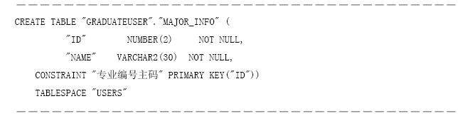 (3)上述創(chuàng)建數(shù)據(jù)表graduateuser.major_info的sql代碼如下。