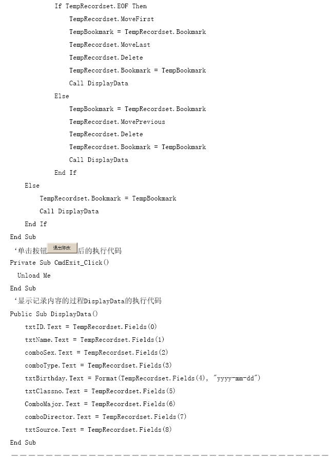 (7)為什么這些菜單可以調用這些子窗體或者執(zhí)行退出主窗體的操作呢?在圖10.50的主窗體中用鼠標雙擊,在出現(xiàn)的代碼窗口中的主要代碼如下。