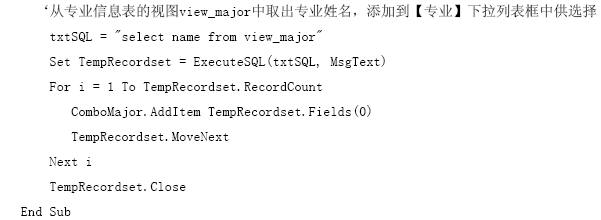 ‘選擇菜單項majorinsertmenu后將顯示子窗體forminsertmajor
