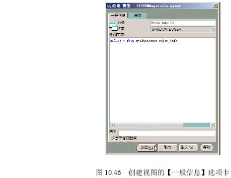 【參見光盤文件】:第10章/createviewmajor.sql。