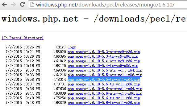 一般來說,官網(wǎng)的資料是最新和最全的,推薦到官網(wǎng)去下載。下載地址是:http://windows.php.net/downloads/pecl/releases/mongo/。我選擇的是1.6.10版本的