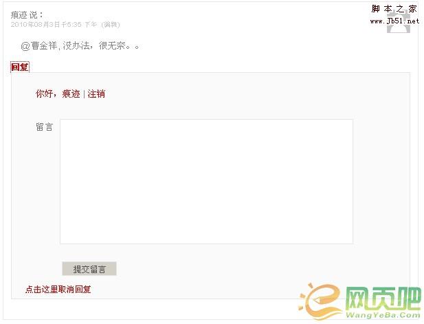 這是一個取消評論的鏈接。一般情況下,該鏈接不顯示,只有要針對某人進行評論,而不想評論時可以點擊這個鏈接把評論框復位。