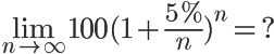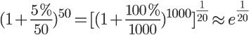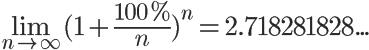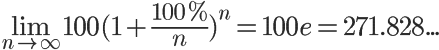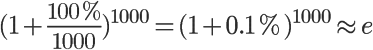 我們知道,在100%利息率的情況下,n=1000所得到的值非常接近e:
