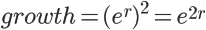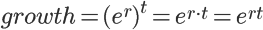 上式的rate就代表增長率。這說明e可以用于任何增長率的計算,前提是它必須是持續不斷的復合式增長。