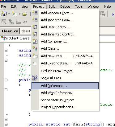 選擇“工程->添加引用”(Project->Add reference),然后瀏覽文件找到dll,點擊 Ok: |