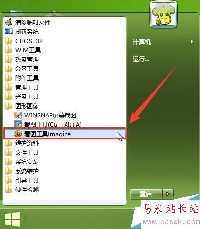 2、進入Win8PE系統桌面,點擊“開始菜單 - 圖形圖像 - 看圖工具Imagine”點擊打開。如下圖所示