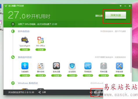3、在這里我們可以點(diǎn)擊深度加速或者點(diǎn)擊下方的啟動(dòng)項(xiàng)進(jìn)行更詳細(xì)的設(shè)置。