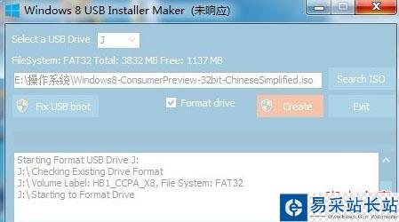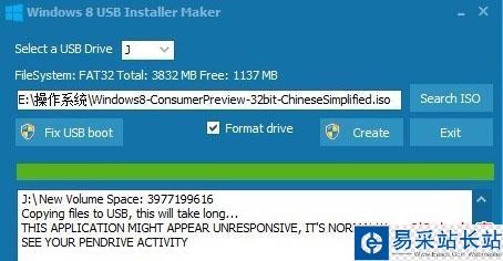 5、單擊“Create”按鈕開始制作Windows 8啟動U盤。