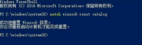 netsh winsock reset catalog 出現,如下圖示,即代表成功: